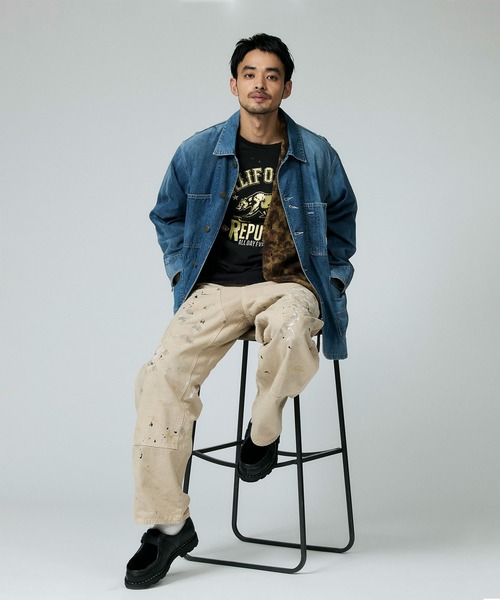 製品染め後、さらにダメージやエイジング加工を施して洗いこむことで、ワークウェアのようなヴィンテージな雰囲気に仕上げております。