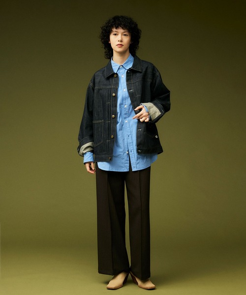 肉感は柔らかい風合いで身体に馴染みやすい13オンスのデニムを採用。ジャケット使いとしてはもちろん、ジャストサイズでアウターの中に重ねたスタイルもおすすめです。