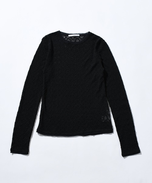 伸縮性のあるレース素材を使用したロングスリーブTシャツ。