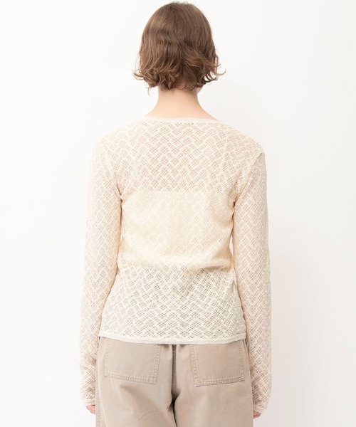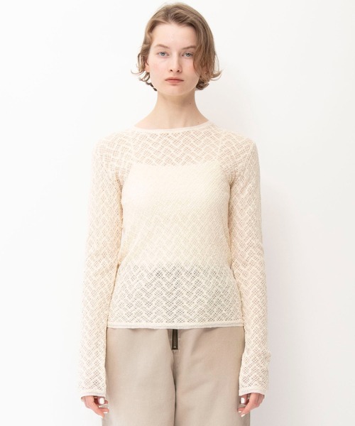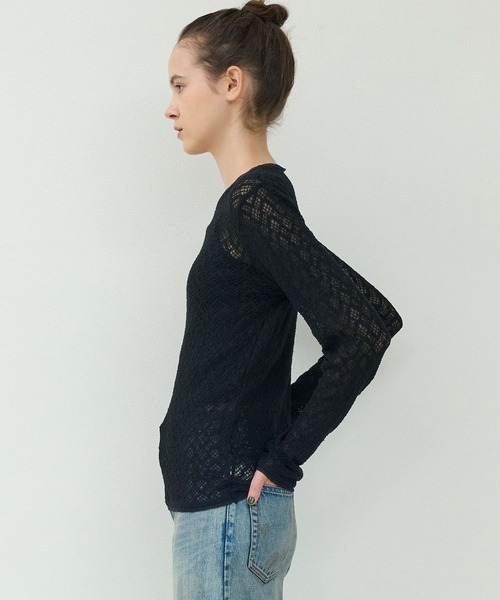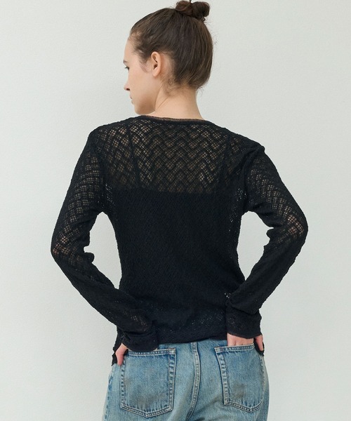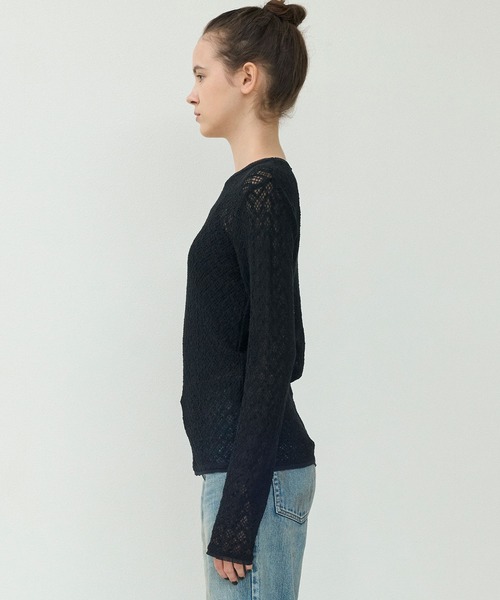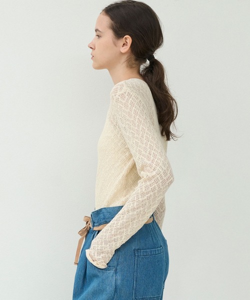 シアー感のある素材のため、インナーをレイヤードした抜け感のあるスタイリングをお楽しみいただけます。