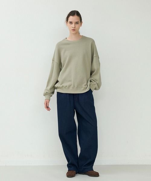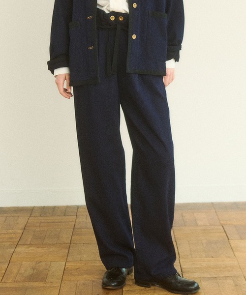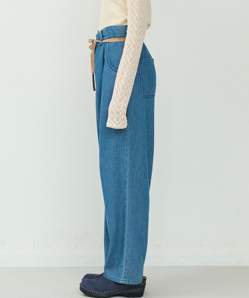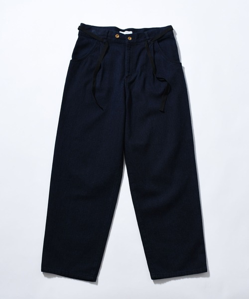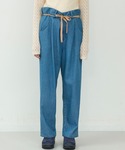 脚のラインを拾わないゆったりとしたシルエットで、テープでウエストマークするタイプのデザインです。