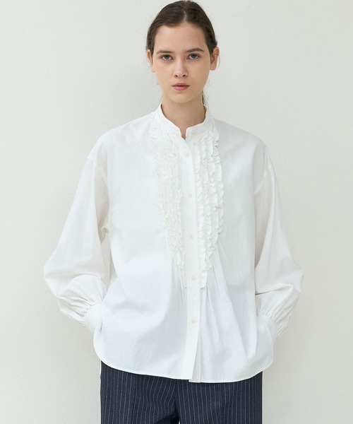 JOHNBULLレディースのベーシックアイテム、フリルシャツ。