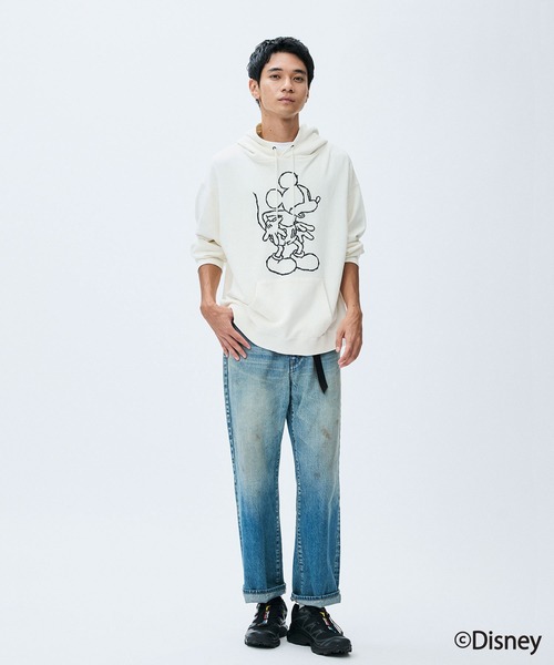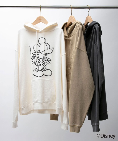 クラシカルなタッチのMICKEYをラフなタッチで刺繍し、ライトベージュとチャコールグレーはさらに製品染めにより、古着のようなヴィンテージライクな雰囲気に仕上げています。