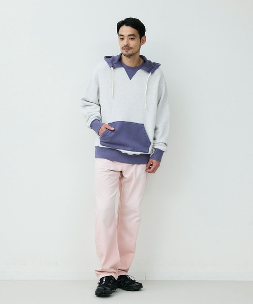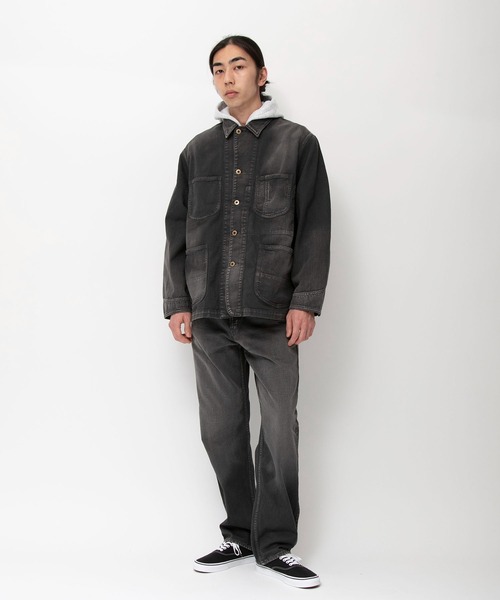製品染め後にストーンバイオ、部分的にブリーチ加工を施すことでシンプルながらもユーズドライクな表情に仕上げています。