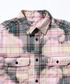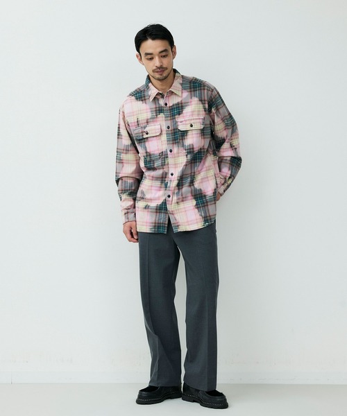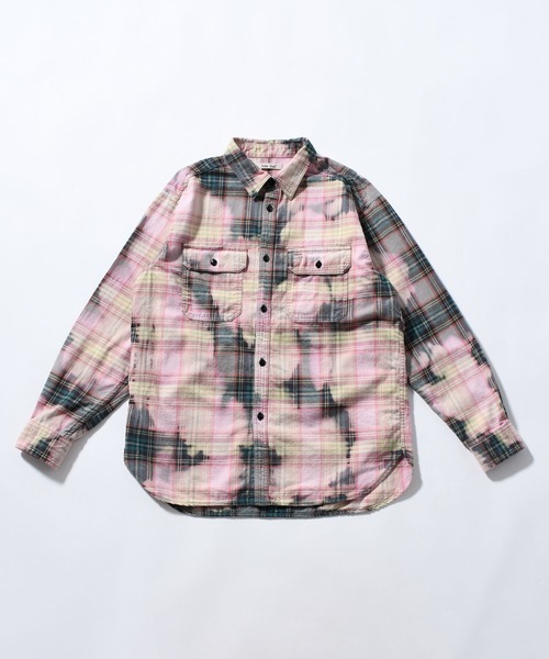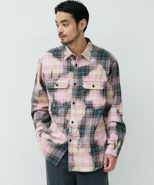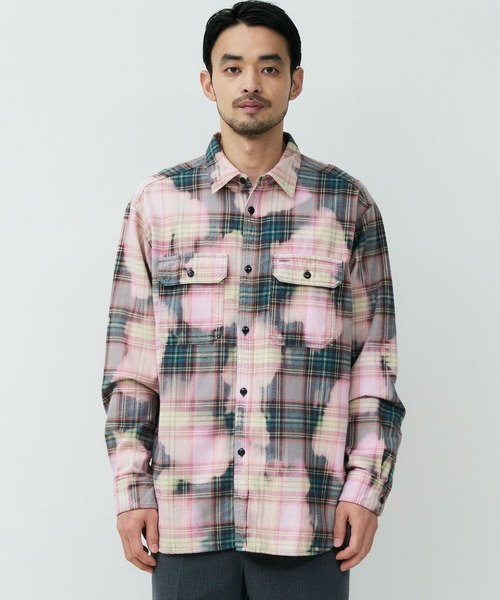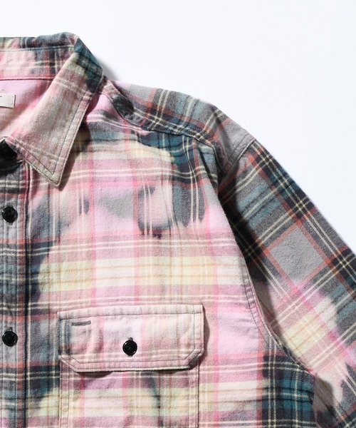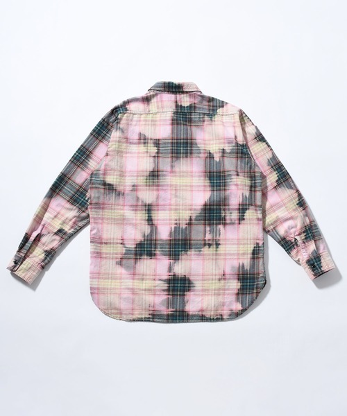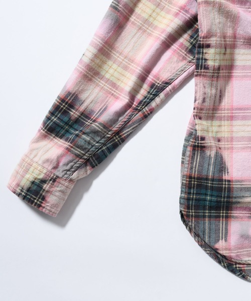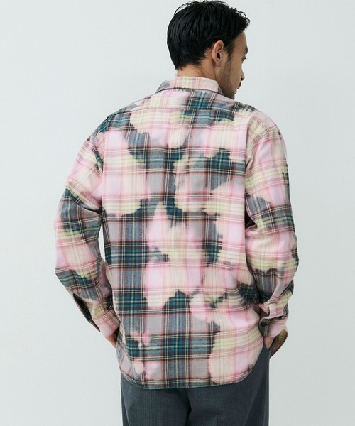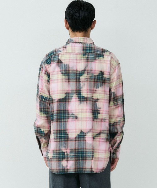 部分的にブリーチ加工を施したチェック柄シャツ。