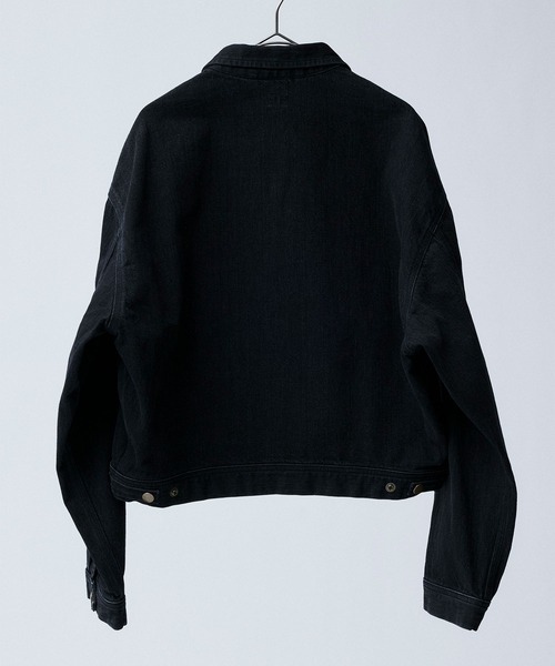 ショート丈のコンパクトなシルエットが特徴で、ボリュームのあるボトムと好相性。女性が着た時に華奢に見えるよう肩の位置やポケットの位置を調整しています。