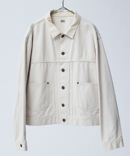 当時流行していたデニムジャケットをベースにバランスよくディティールを削ぎ落し、ワークウェアのアイテムによく見られるようなイメージで衿にコーデュロイを使用しています。