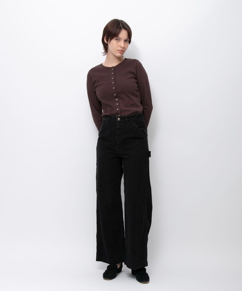 "ゆったりとしたストレートシルエットで生地も柔らかく穿き心地抜群です。穿きこんだような加工感で鮮やかなブルーが特徴的です。rebearの1点もののシャツやジャケットなどと好相性。シャツをタックインしてrebearのジャケットを羽織るスタイリングがおすすめです。タックインするときは、レザーベルトを合わせるとスタイリングが締まるのでぜひ合わせてみてください。"