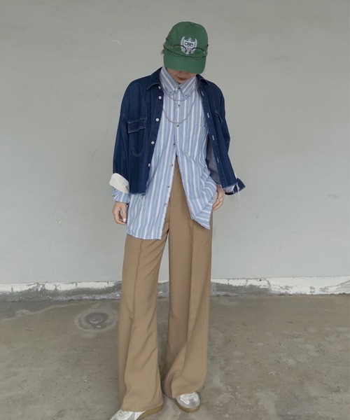 ストライプピンタックワイドスラックス