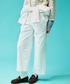 【ホワイト】は8.5オンスのホワイトカツラギ、【ライトインディゴブルー】は7.5オンスのインディゴデニムを使用して薄手の素材感をユーズドライクに仕上げています。