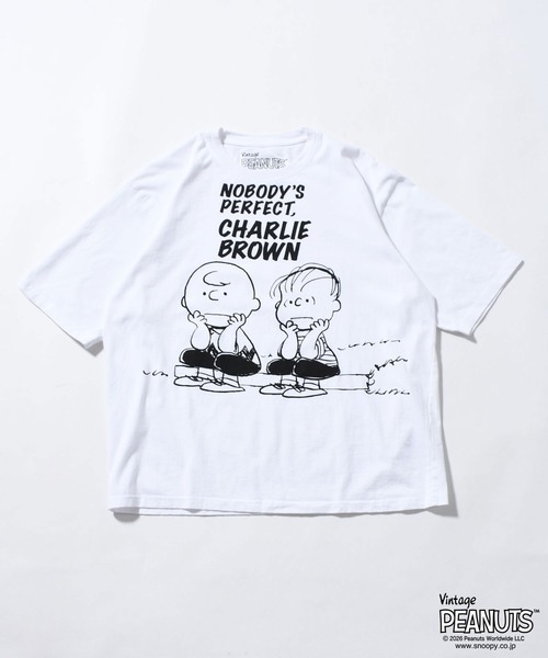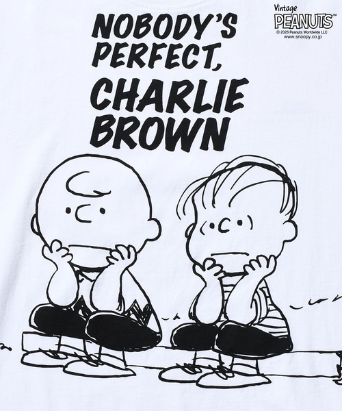”NOBODY'S PERFECT, CHARLIE BROWN”- - - ”誰も完璧じゃないよ、チャーリー・ブラウン”というフレーズと、チャーリー・ブラウンとライナスが並ぶ姿がポイントのアイテムです。
