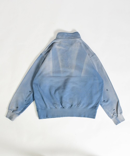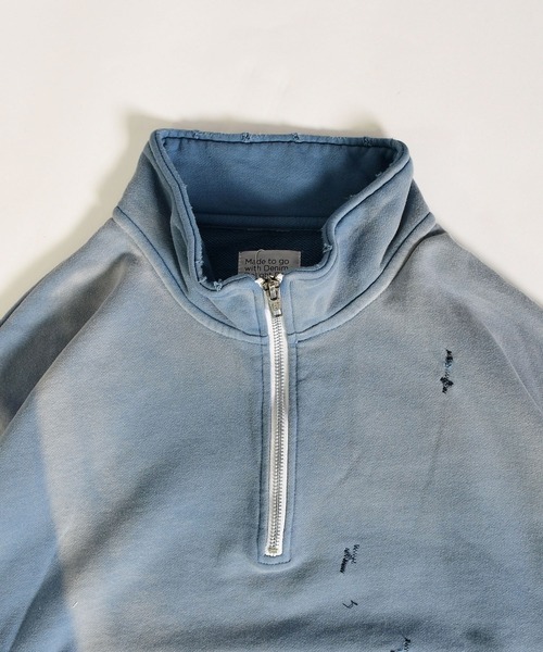 ヴィンテージな雰囲気に加工を施したハーフZIPスウェット。