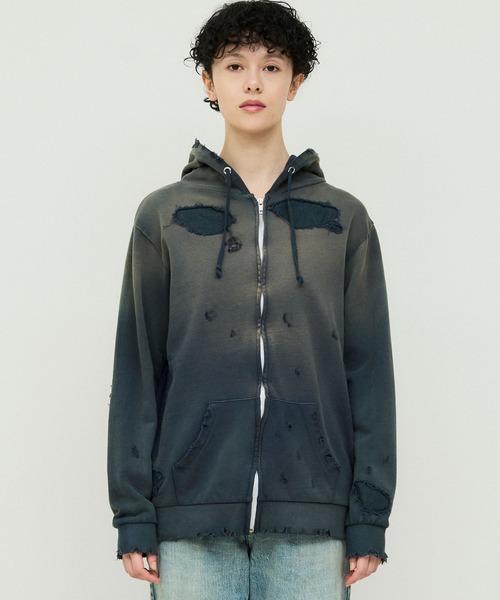 加工感にこだわったヴィンテージなZIPアップパーカー。