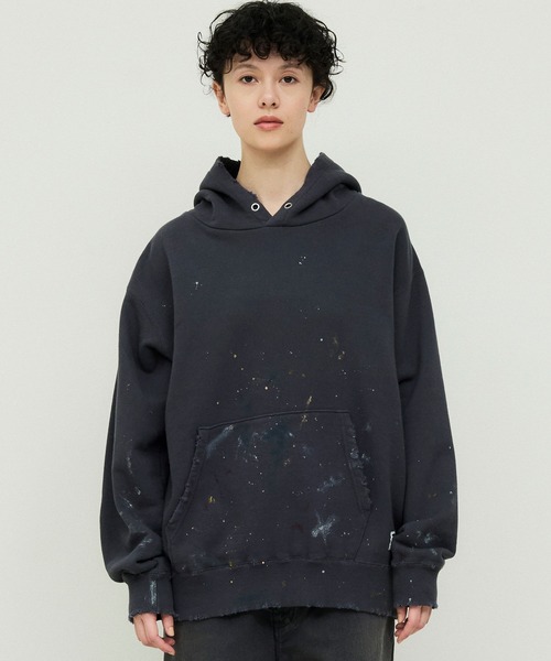 ペイント加工がヴィンテージライクなスウェットパーカー。