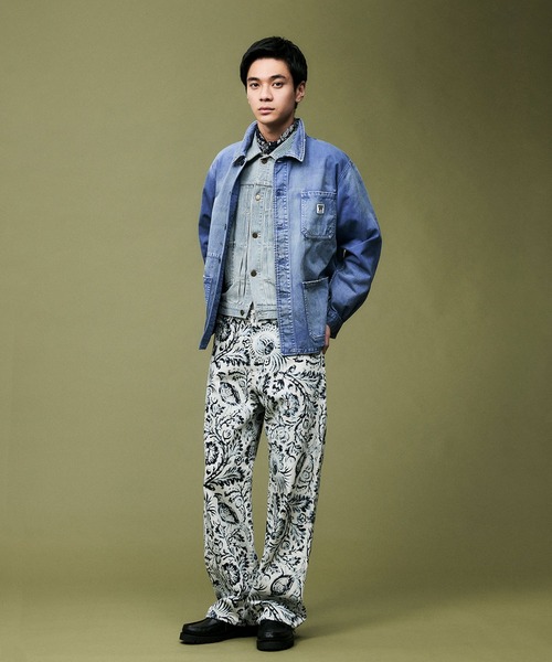 春:セットアップで、フレンチワークスタイルを楽しんで。程よく色落ちしたカラーリングのため、軽やかさと季節感を演出できます。インナーにはジョンブルのアーティストTシャツを合わせ、グラフィックで遊び心をプラス。