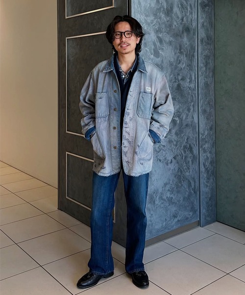 年齢性別問わず穿きやすく考えられた定番シルエットで、ヒゲ、シェービング、汚し、ダメージ加工を施しヴィンテージデニムの雰囲気を細部まで再現した一着です。